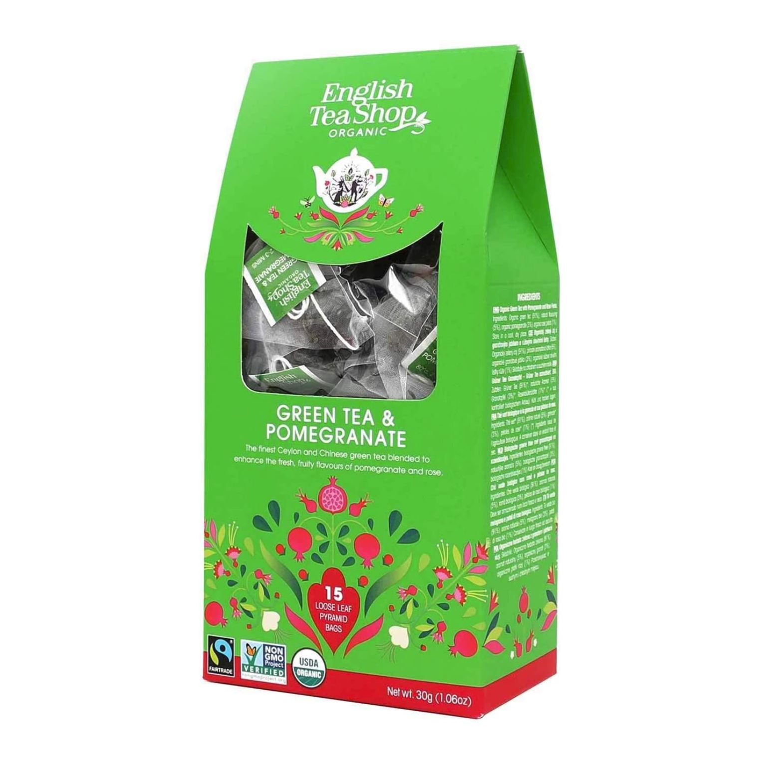 English Tea Shop | Ekološki Zeleni čaj z granatnim jabolkom, 15 svilnatih vrečk