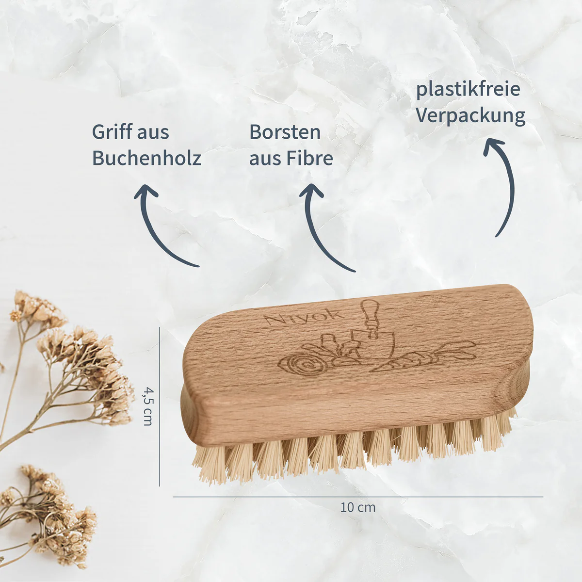 Naša vrtna krtača za roke je popoln mali pomočnik za vsakega vrtnarja. Zahvaljujoč visokokakovostnim ščetinam iz veganskih vlaken se z rok in nohtov odstrani vsa groba umazanija, ki ostane po vrtnarjenju. Krtača za roke je izdelana iz trajnostnega bukovega lesa, obdelanega z lanenim oljem, kar zagotavlja dolgo življenjsko dobo. Optimalna velikost in obodni vdolbin ročaj zagotavljata udoben oprijem med uporabo. Po uporabi krtačo postavite v dobro prezračen prostor s ščetinami navzdol, da se temeljito posuši. Tako bo les dolgo časa ohranil svoj lep videz.